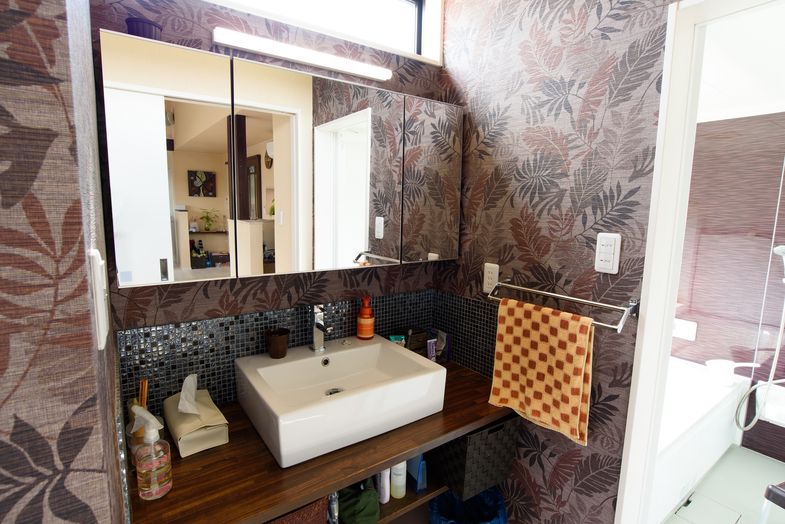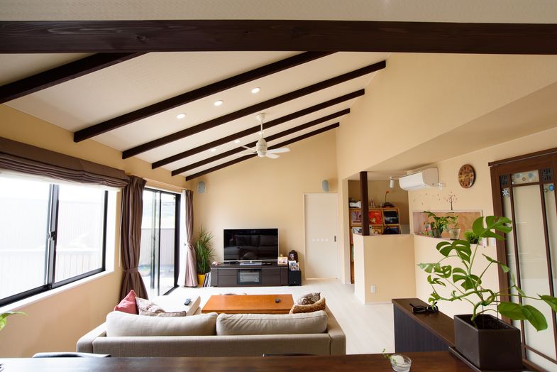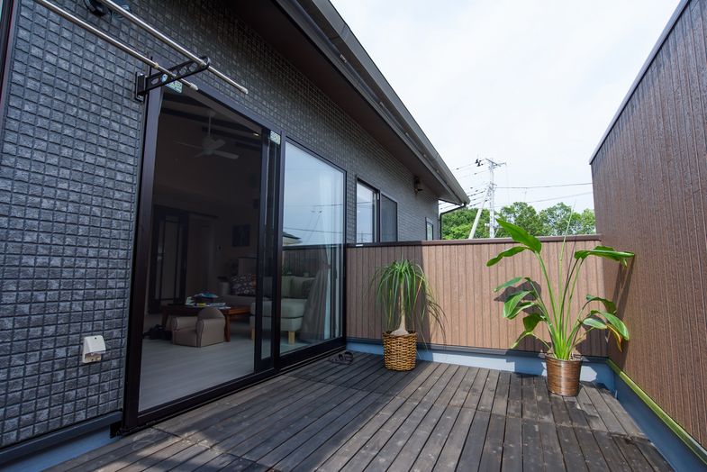 南面にある建物の影響を考え日当たりのよい2階リビングを採用し、隣地建物からの視線を遮るプライベートウォールをしつらえました。また、友人の多く集まるS様宅は、インテリアのイメージがアジアンモダンにしたいというご希望により、テーマをバリモダンに設定して計画を進めました。
