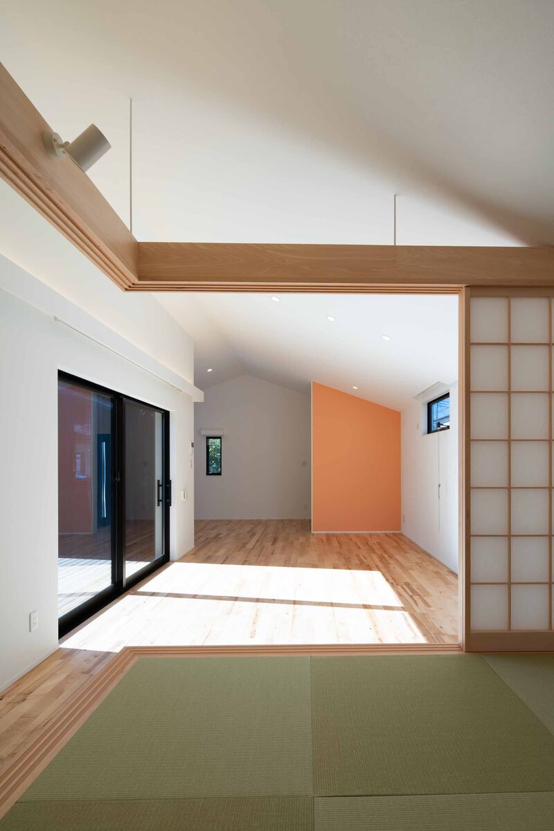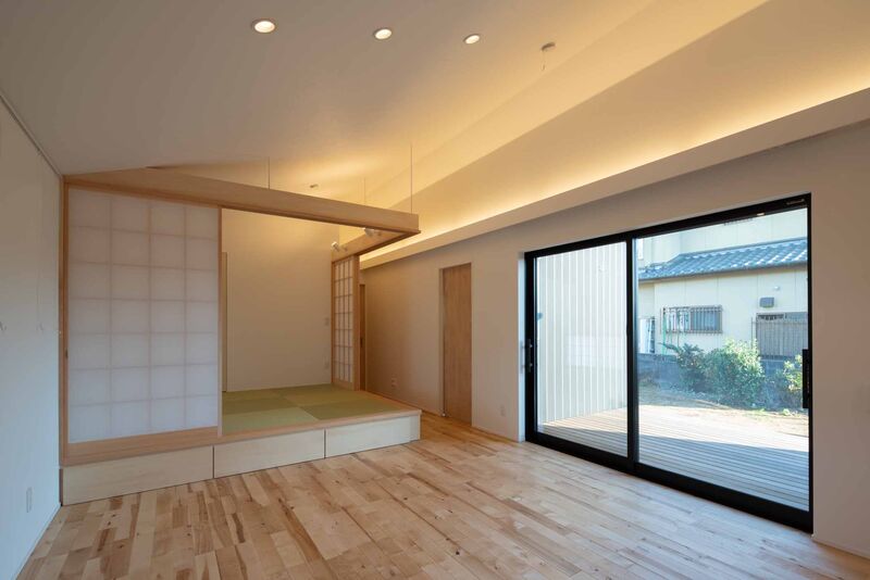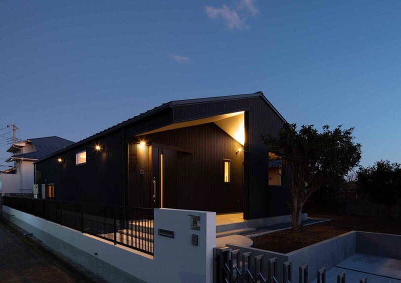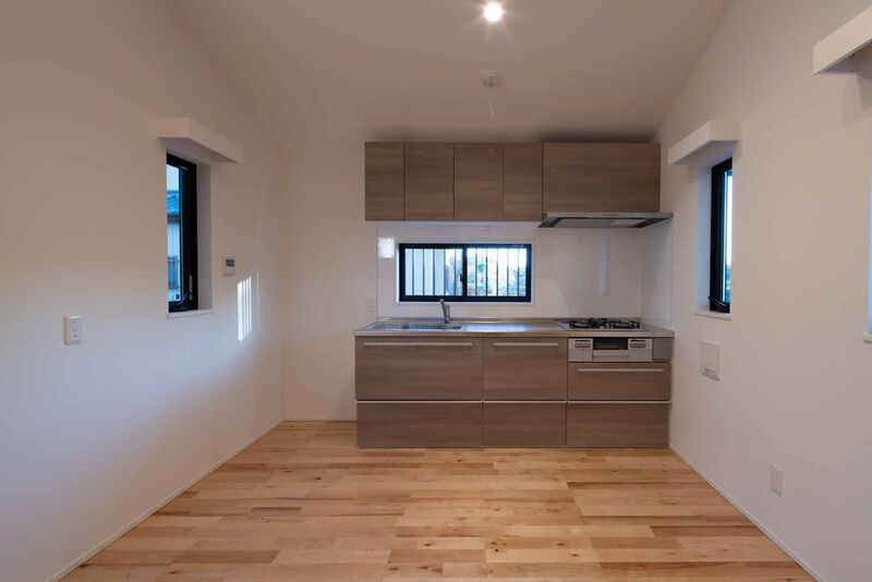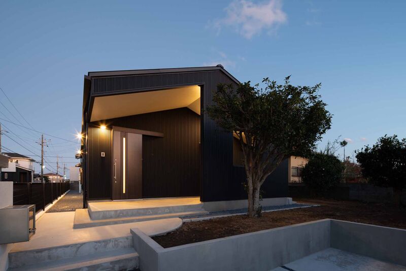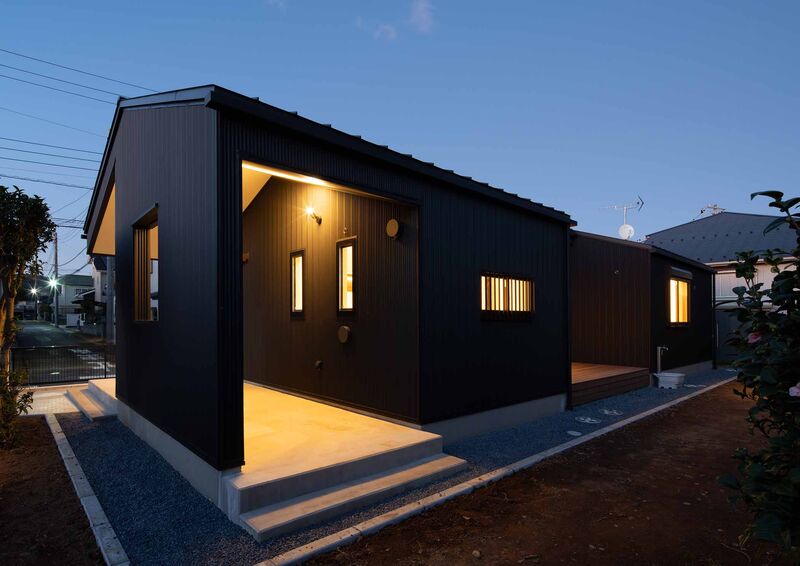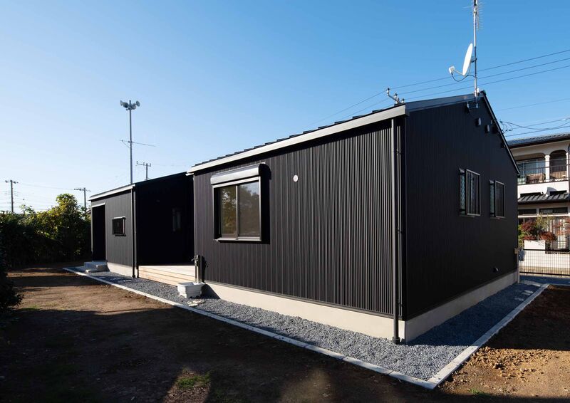 日立市の小高い団地内に建つ、2LDKの平屋の住まい。設計は、NAICA1級建築事務所の湯浅先生が担当されました。ローコストの平屋建て住宅で、ワンルームのLDKと色々な用途に対応できる外土間と中庭をもつ住宅です。