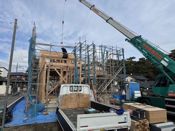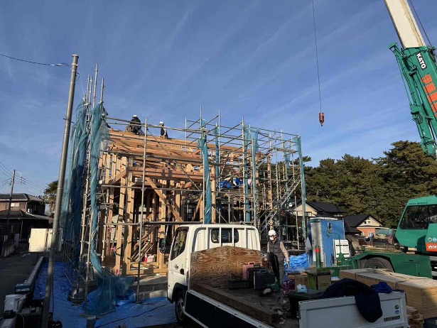 2026年01月05日住宅部 上棟しました! 大洗町 O様邸 上棟しました✨上棟おめでとうございます! 年末のクリスマスイヴに予定しておりましたが、雨のため、年明けとなってしまいました。残念と思われがちですが、上棟の日に雨が降る事は【福が降り込む】【火事にならない】と縁起の良い言い伝えがあるそうです☺️安全第一でこれからも取り組んでいきます!完成までよろしくお願いします💪 ページトップへ