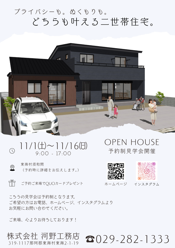 リニューアル最初の内容は、新築住宅予約制見学会のお知らせです👏