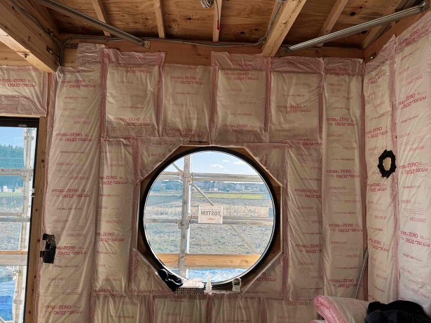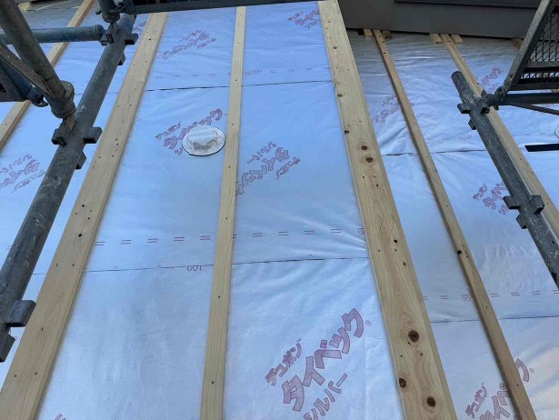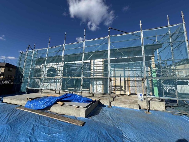 外壁面の透湿防水シートを施工した状態で