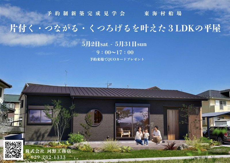 東海村船場にて、予約制新築住宅見学会を開催します。